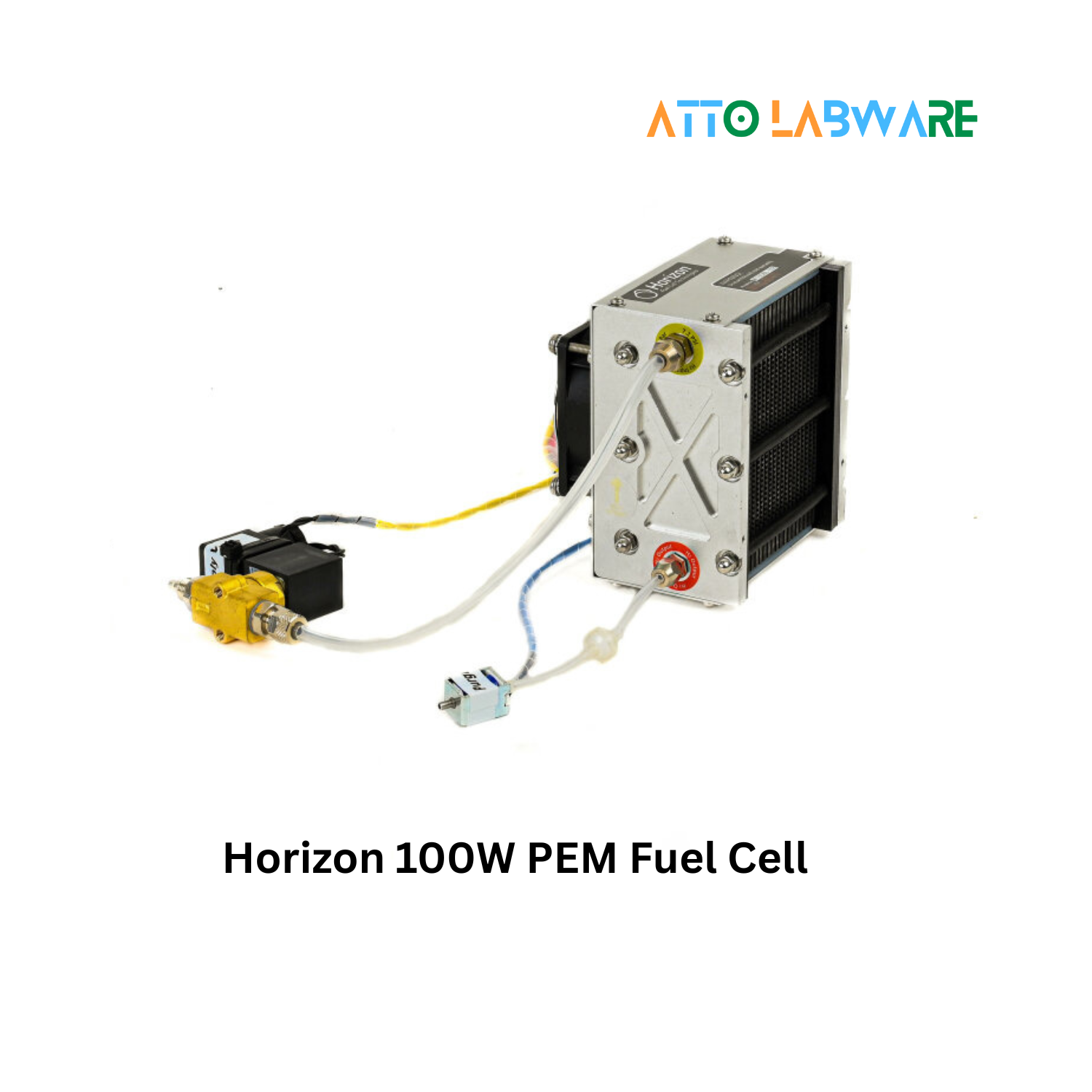 The Horizon-100 PEM Fuel Cell Test System (100W), manufactured by Atto Labware and integrated with a Horizon 100W PEM fuel cell stack, is an advanced educational and research trainer for studying hydrogen fuel cell technology. It demonstrates hydrogen-to-electricity conversion, efficiency, and performance characteristics under various load conditions. With integrated safety and control features, the system is ideal for renewable energy labs, technical institutes, universities, and R&D centers.